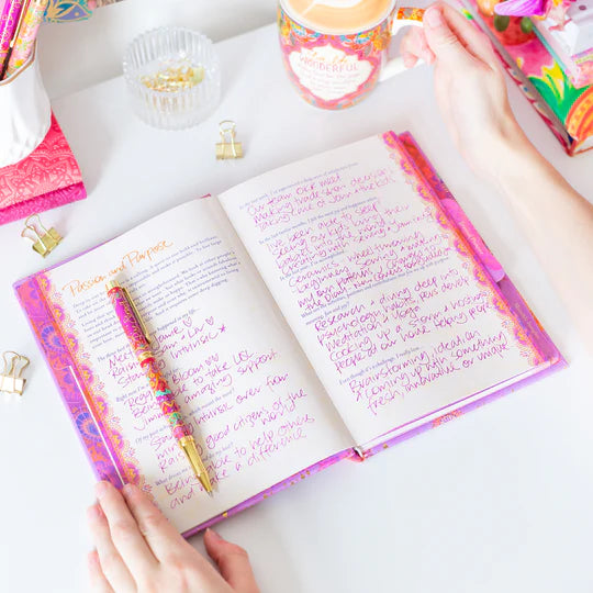 Featuring a gorgeous rainbow hardcover, adorned with lilac, pink and orange hues, sparkles of gold foil, and an uplifting quote by South Australian inspiration icon Adèle Basheer, this A5 journal is set to add a burst of inspiration to your goal setting!