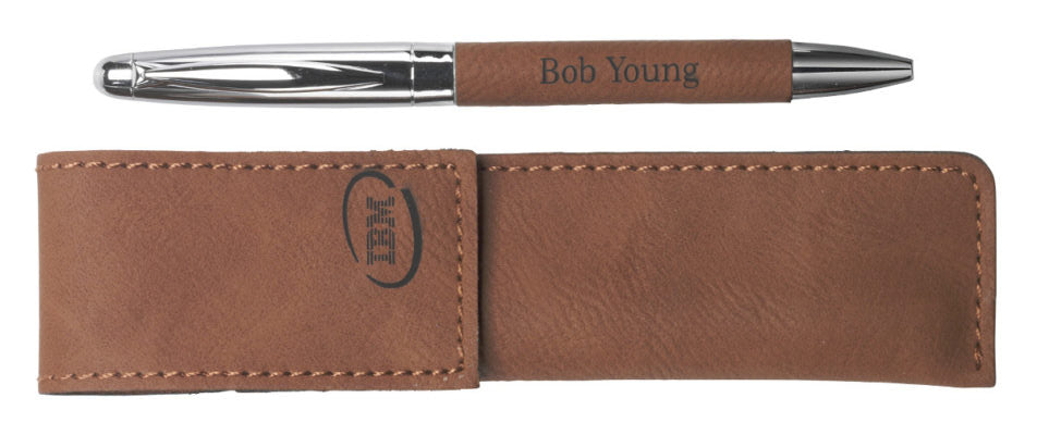 Range of engravable* leatherette promotional and gift items present variety of options to recognise the efforts and achievements of your participants or employees. The leatherette Pen Gift Set represents a nice, useable award for your recipients and allows for engraving on the pen and case provided.