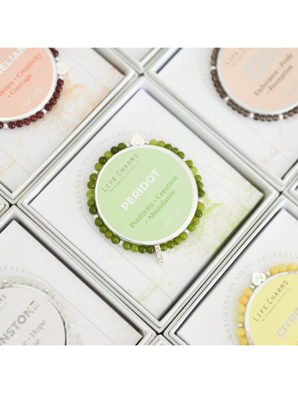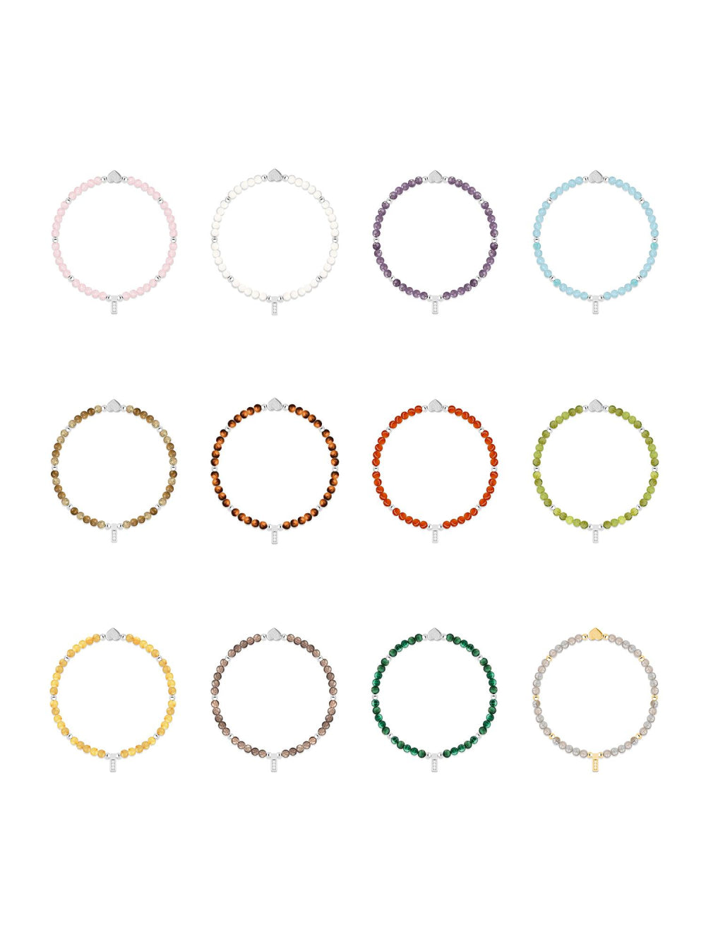 - Details: Beaded 5mm stretch bracelet featuring gold or silver plated charms and colourful wellness stones across an array of themes promoting well-being and vitality.