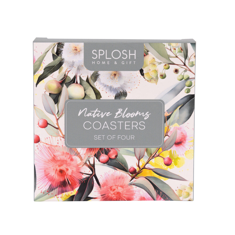 Native Blooms Printed MDF Coasters with Cork Backing Set of 4