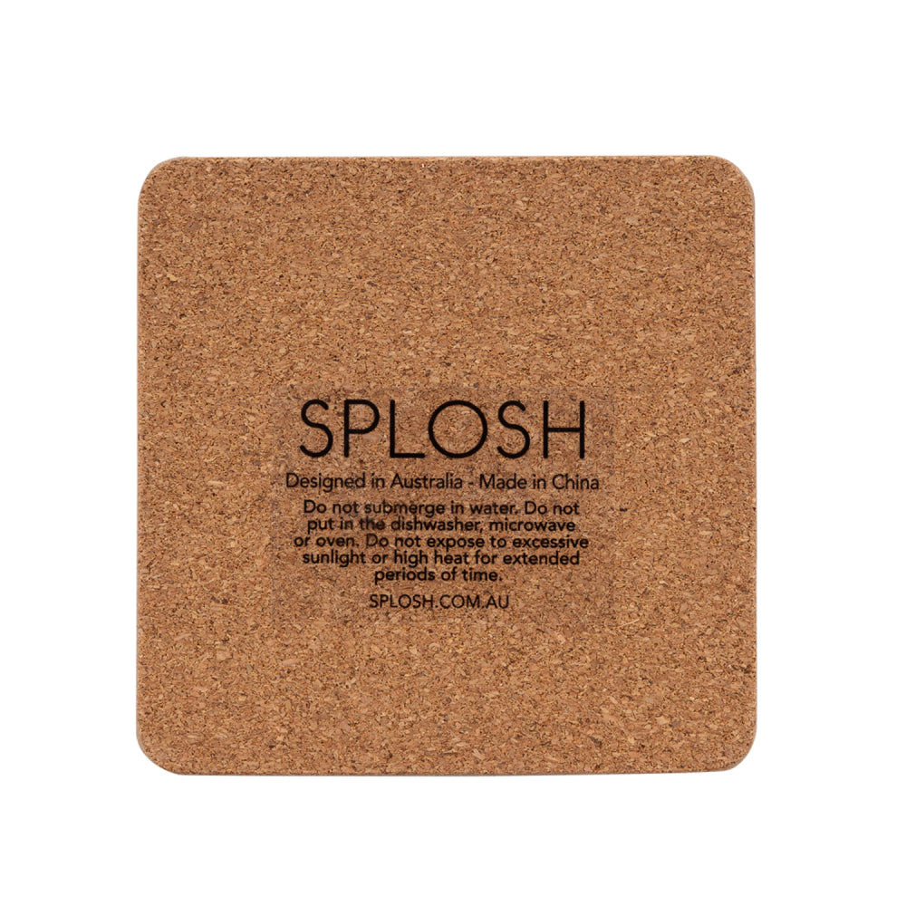 - Details: Cork backed coasters with print. Made from MDF, cork.