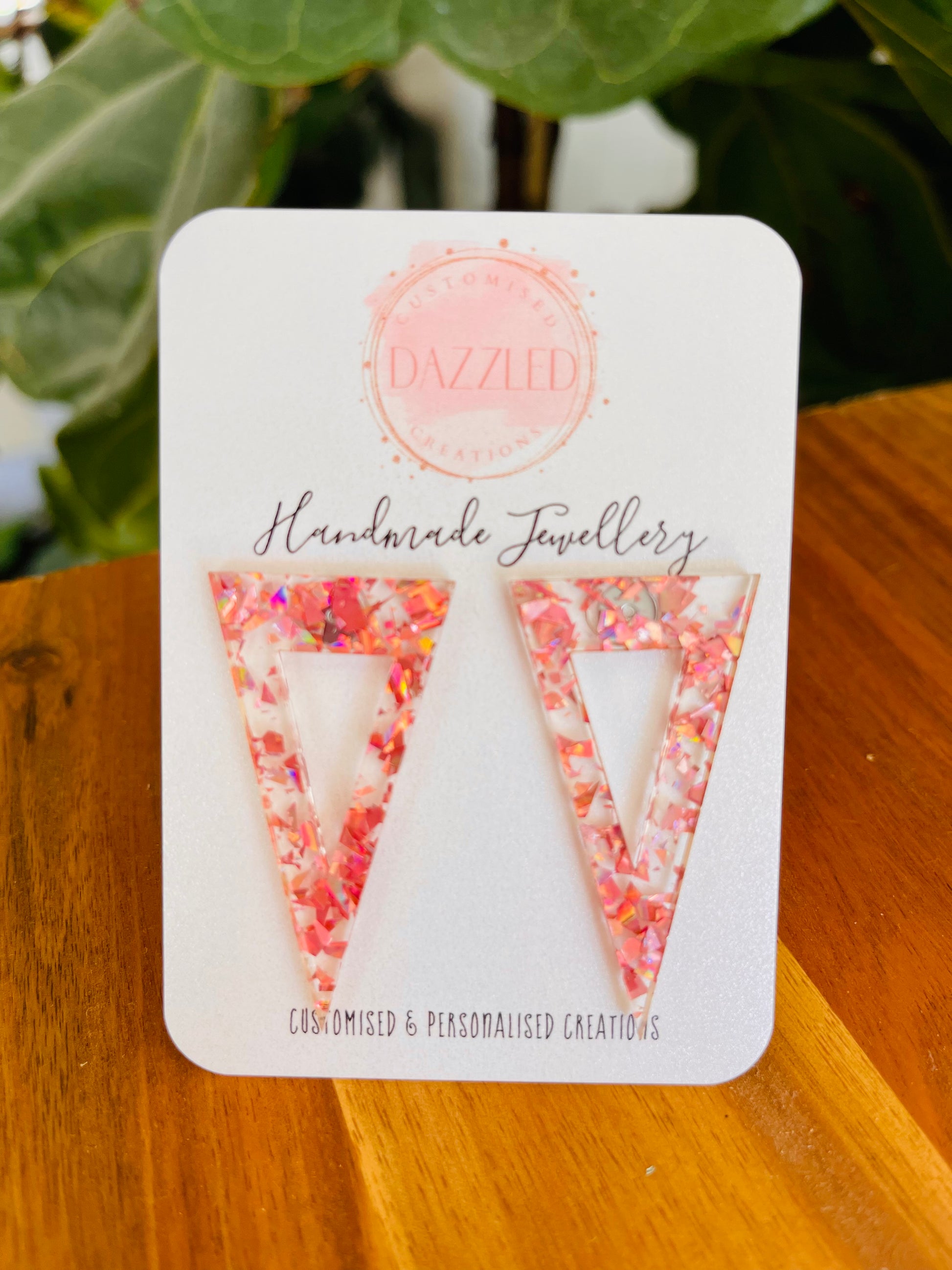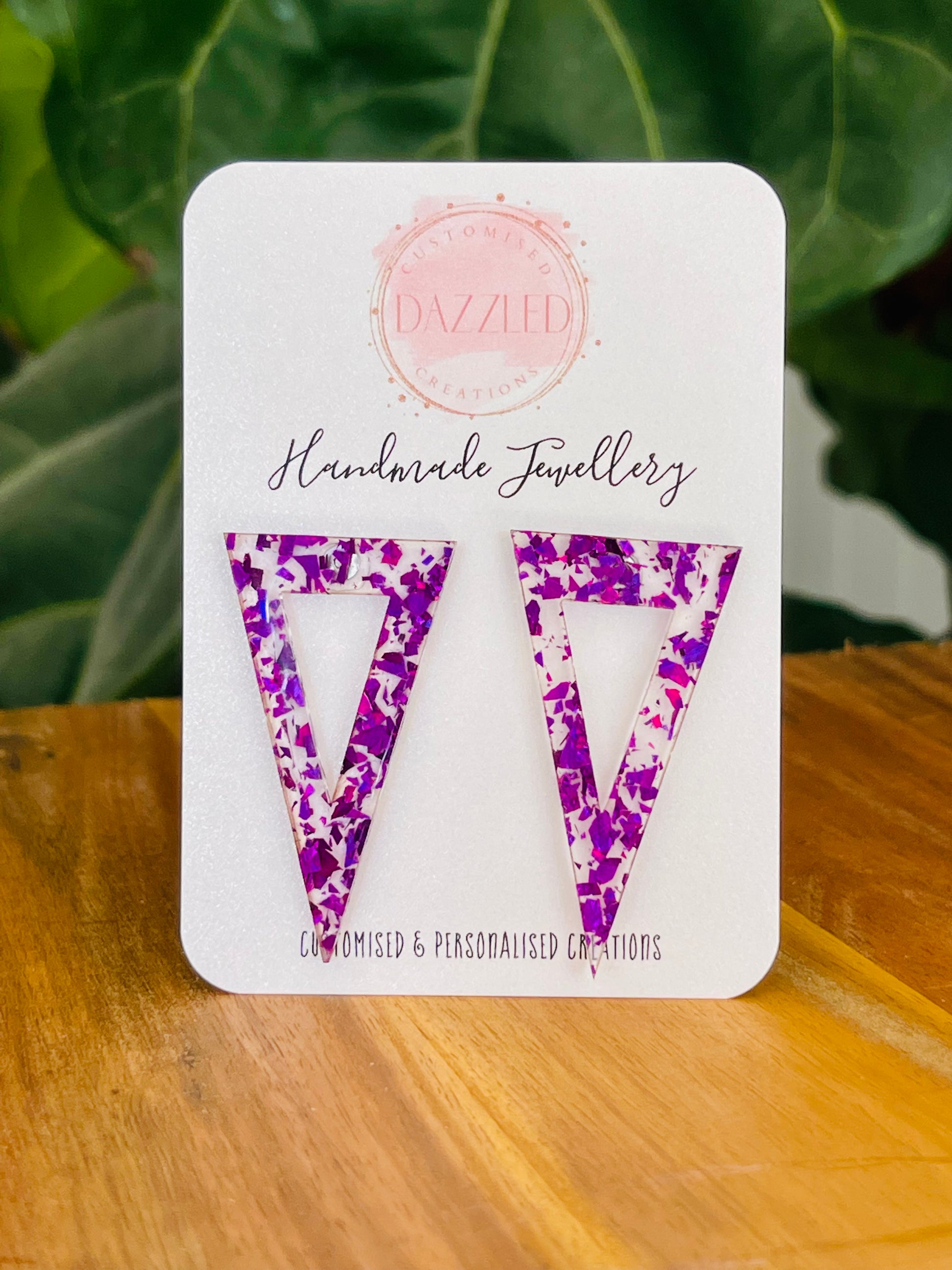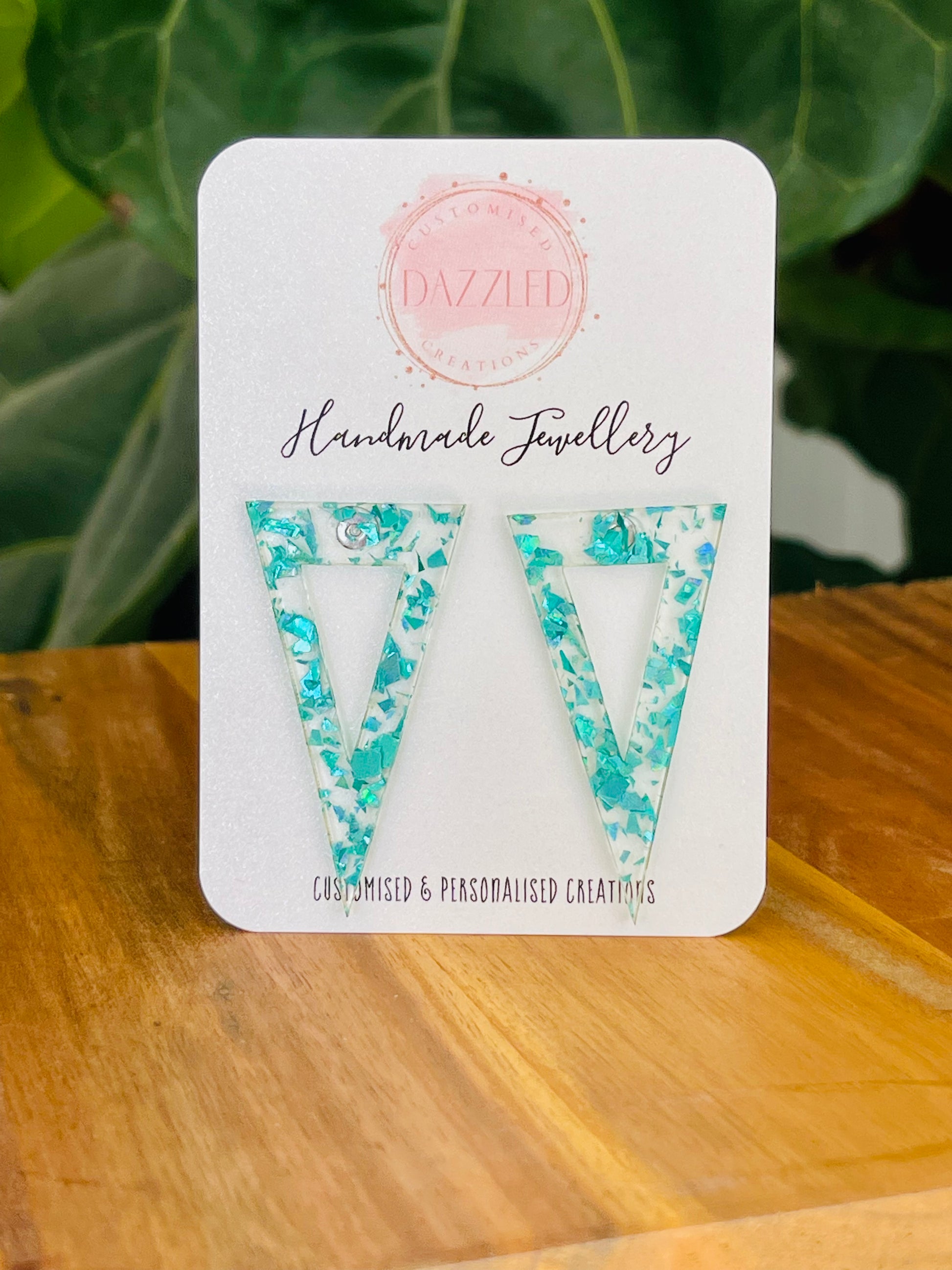 Beautiful triangle shaped acrylic stud earrings with hypoallergenic surgical steal backs - handmade in Australia.