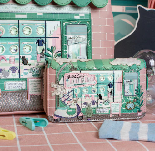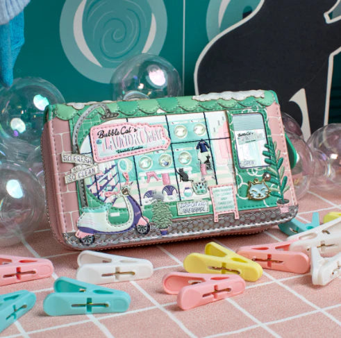 The Bubble Cats Laundromat Medium Ziparound Wallet is everything a Vendulette could wish for! This vegan leather accessory looks “so fresh and so clean” with its bright colours and fun decorative elements, just like the rest of the Bubble Cats Laundromat collection. It features a secure zip-around closure to keep your cash and cards safe, and it fits into most handbags, making it a perfect choice for everyday use. Whether you match it to your bag or simply treat yourself to this quirky wallet, it’s bound to make you smile!
